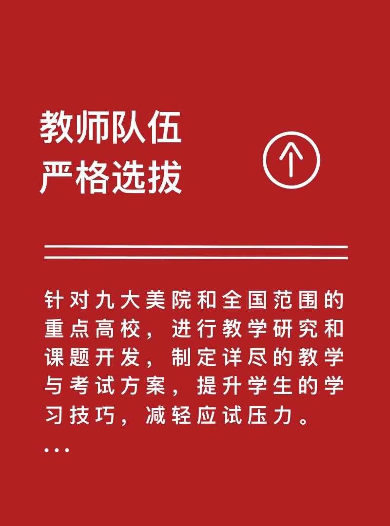 量身定制学习计划,精准导向目标院校,主攻国内顶尖的综合类院校、艺术类院校
